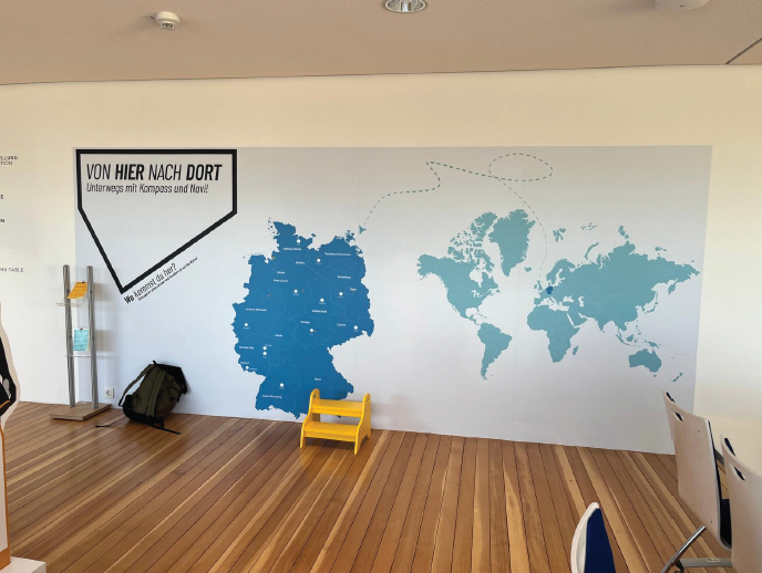 Am 3. Oktober 2024 heißt es „Leinen los!“: Dann startet im Deutschen Schifffahrtsmuseum die Kindernavigationsausstellung „Von hier nach dort - Unterwegs mit Kompass und Navi“. Auf ihrem letzten Halt nach Bremen, Lübeck und Hamburg, stoppt die interaktive Wanderausstellung bis April 2025 im Bangert-Bau. Um die Wanderausstellung in das Gebäude des Schifffahrtsmuseum einzubinden wurden mehrere Grafiken entwickelt, die das Design aufgreifft.